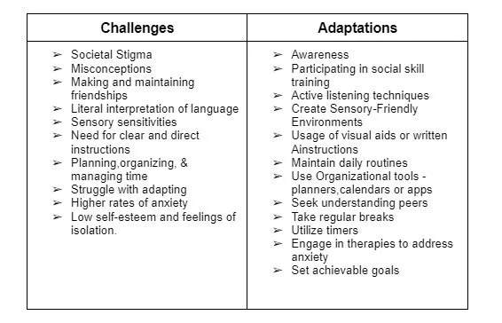 It can be a turning point for an adult diagnosed with ASD with both challenges and opportunities. By implementing the adaptation strategies, adults diagnosed with ASD can navigate their daily lives more effectively, enhance their well-being, and achieve their personal and professional goals. Addressing these challenges often requires a combination of personal coping strategies, support from family and professionals, and accommodations in various settings.Embracing the diagnosis can lead to improved self-awareness, better relationships and a more fulfilling life.